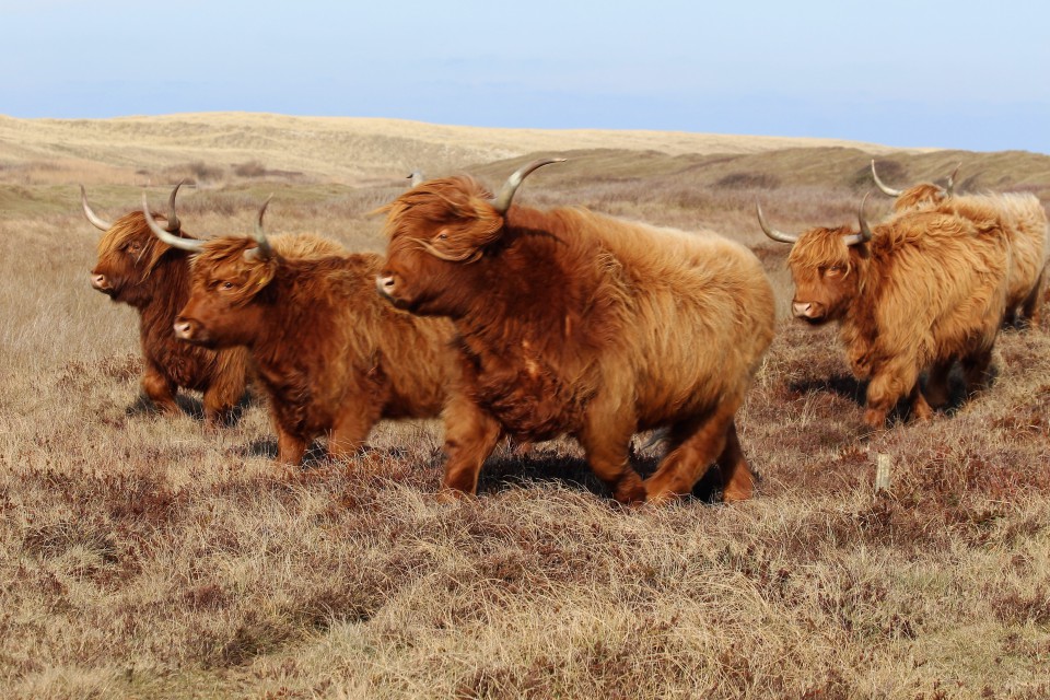 Foto van rennende Schotse Hooglanders wint Fotowedstrijd Texel 2019
