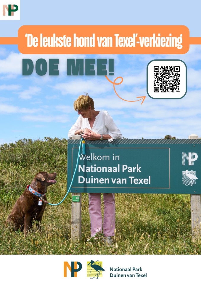 Denk jij dat jouw hond de leukste is? Kom jullie graag samen in Nationaal Park Duinen van Texel? En maken jullie je sterk voor het beschermen van de natuur in het park? Grijp je telefoon, maak een mooie foto van jou en je hond en voeg 'm toe aan het formulier onderaan deze pagina! Tip: deel jouw foto ook op social media en tag @nationaalparkduinenvantexel! Je maakt kans op een fotoshoot van jou en je hond én uiteraard de titel ‘Leukste hond van Texel’. Na de campagne, die loopt van september tot oktober, wordt de winnaar bekend gemaakt.