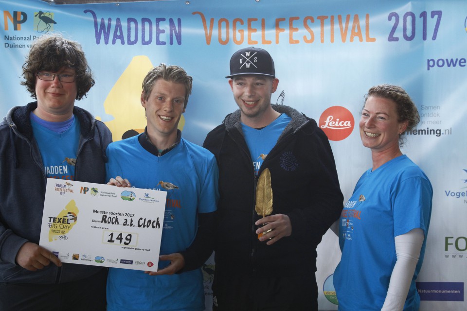 Het team ‘Rock around the Clock’ (zie foto), bestaande uit Folkert Jan Hoogstra, Jeroen Breidenbach en Gijs Baller, won door in totaal 149 vogelsoorten te vinden, gedurende 24 uur non-stop vogelen. Team ‘Birding by Jizz’, bestaande uit Steven Wytema, Vera Wiarda en